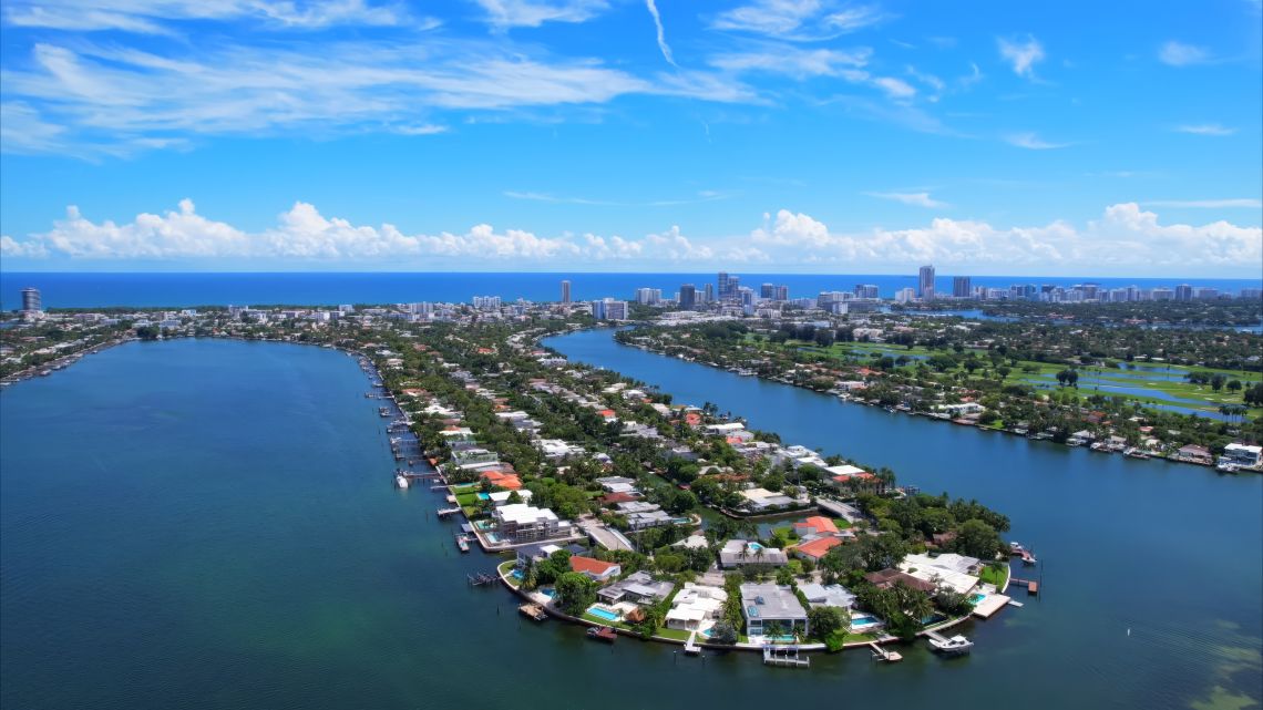 It lies east of North Bay Village and is approximately 20 minutes from Downtown Miami by car.