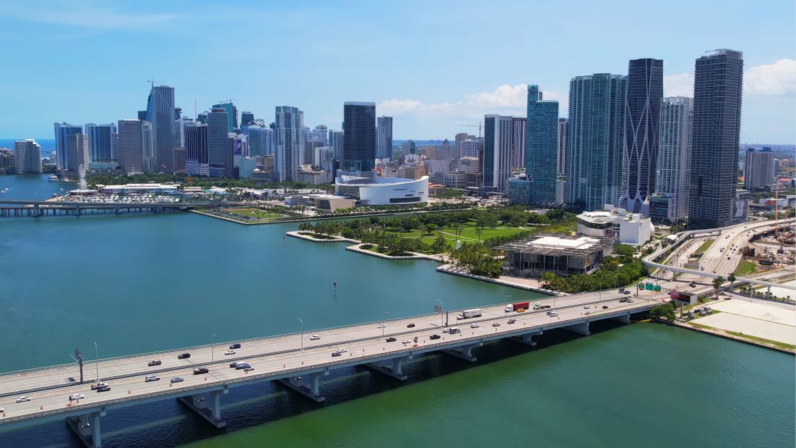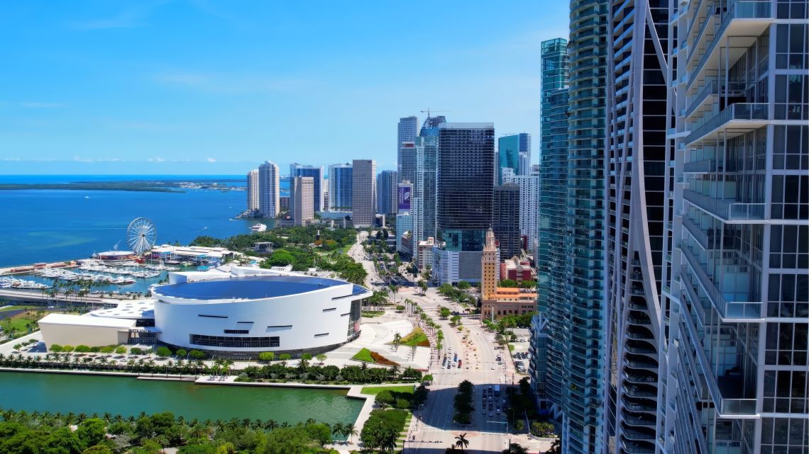 Stretching along Biscayne Bay and bordered by Brickell to the south and Edgewater to the north, with spaces filled by glass condominium towers, waterfront parks, corporate headquarters, and nonstop energy, Downtown Miami sits at the center of it all — where government buildings, luxury high-rises, transit lines, and cultural venues converge in one dense urban grid.