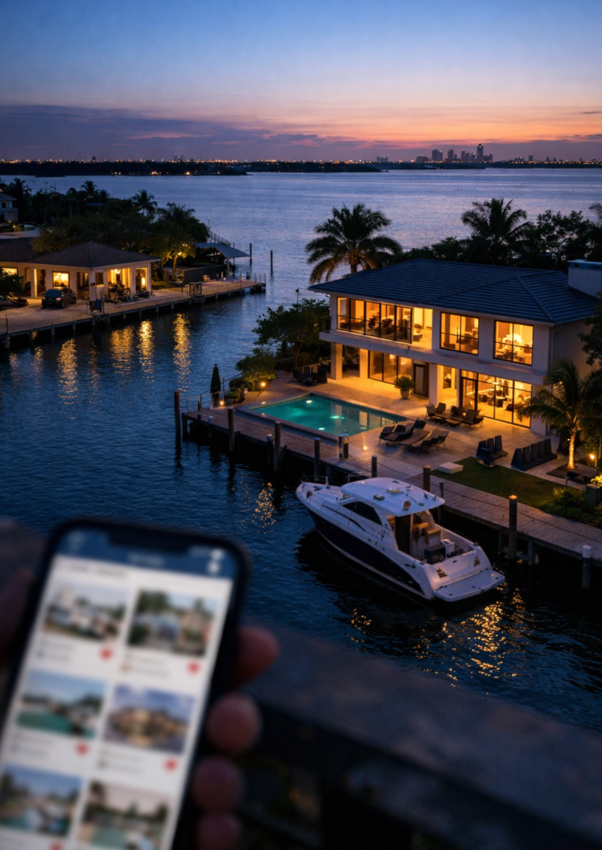 They're searching with intention, filtering for waterfront, private dock, gated entry, and a Miami Beach address.