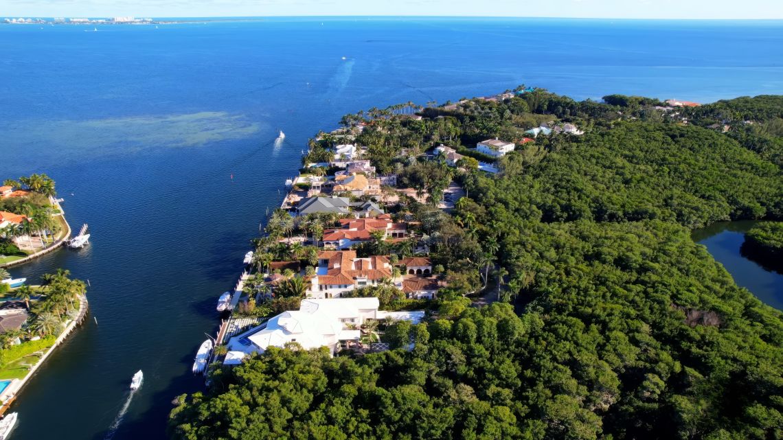 It sits along Biscayne Bay, positioned between Gables Estates and Matheson Hammock Park, offering direct access to open water.
