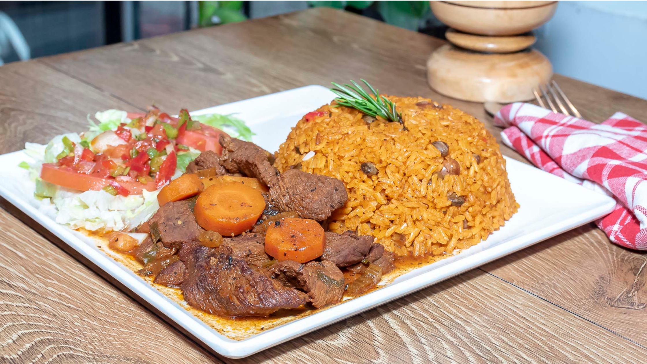 Here, every plate comes with moro, tostones, yuca, or arroz y habichuela, displaying pure comfort done right.