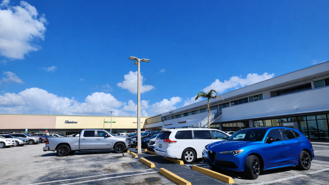 Inside, local and rotating tenants add to its utility, including Dollar Tree, Payless, Rent-A-Center, and local gems like Guarapo Juice Bar, which infuse Midpoint with a subtle Miami heartbeat.